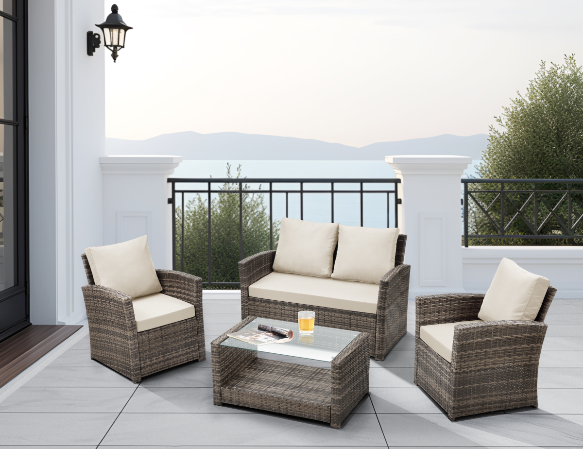 Predstavujeme vám luxusnú ratanovú záhradnú súpravu, ktorá do vášho vonkajšieho priestoru prinesie eleganciu a pohodlie. Táto súprava pozostáva z dvojsedačky, dvoch kresiel a konferenčného stolíka s tvrdeným sklom a je navrhnutá tak, aby spĺňala všetky vaše potreby na relaxáciu a zábavu vonku. Súprava je ideálna do záhrad, na terasy alebo balkóny a vám a vašim hosťom ponúka maximálne pohodlie a štýl. Doprajte si luxusné vonkajšie posedenie s našou ratanovou záhradnou súpravou a užite si krásne chvíle na čerstvom vzduchu.
