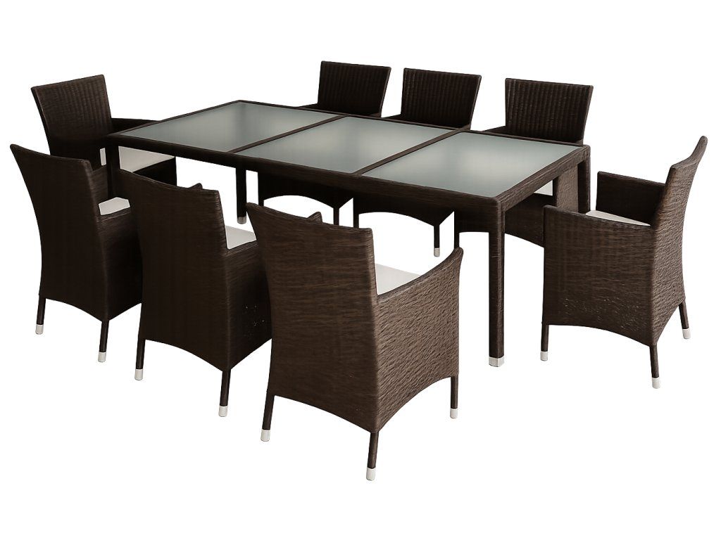 9-dielny záhradný ratanový jedálenský set s polstrovaním BestBerg BBRF-81B / hnedá/béžová