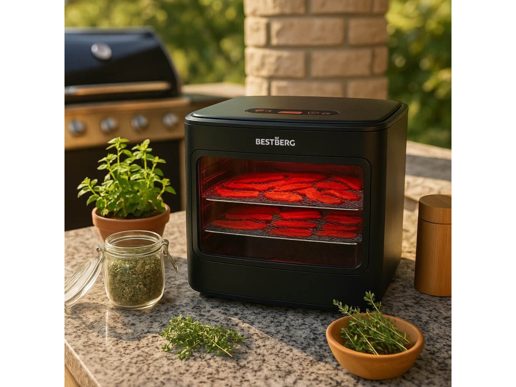 Infračervená sušička ovocia, húb a mäsa BestBerg BBFD-20 / 5 platní / 500 W / čierna