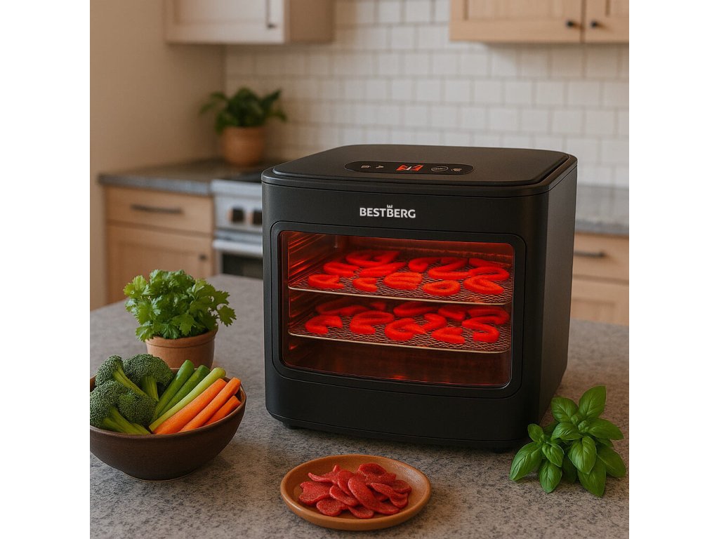 Infračervená sušička potravín s technológiou blízkou infračervenému žiareniu je moderným riešením pre každého, kto chce sušiť potraviny rýchlo, efektívne a s maximálnou starostlivosťou o ich výživovú hodnotu. Tento spôsob sušenia funguje na základe ohrevu potravín a ich vnútornej štruktúry, čo vedie k rovnomernému a šetrnému odstráneniu vlhkosti. Výsledkom sú sušené suroviny s bohatou chuťou, zachovanou farbou a vitamínmi - bez potreby pridávania konzervačných látok alebo dochucovadiel. Infračervené sušenie zároveň výrazne znižuje riziko vzniku plesní a baktérií, pretože vlhkosť sa odstraňuje nielen z povrchu, ale aj z hlbších vrstiev potravín.