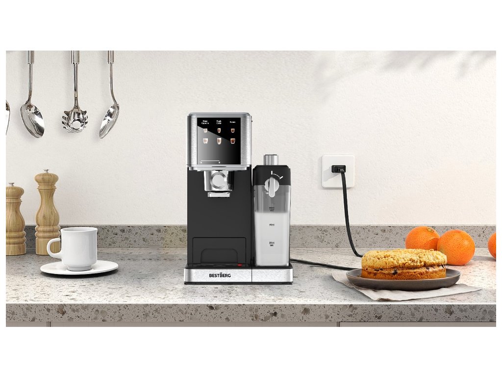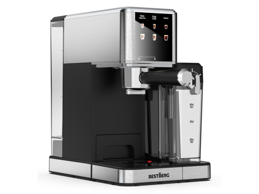 Pákový kávovar s napeňovačom mlieka BestBerg BBCF-2032 / 1350 W / 1,2 l / 20 bar / strieborná/čierna