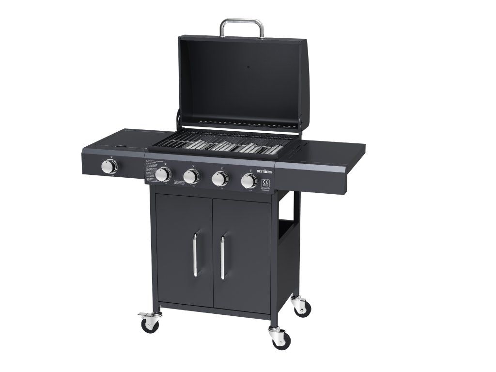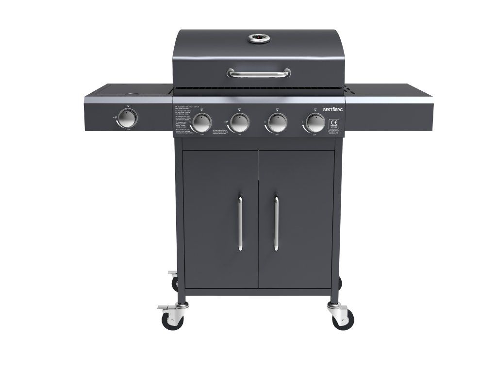 Výkonný plynový gril BestBerg BBBQ-28SBVďaka kombinácii štyroch hlavných horákov a jedného bočného horáka zvládnete prípravu celého menu naraz.