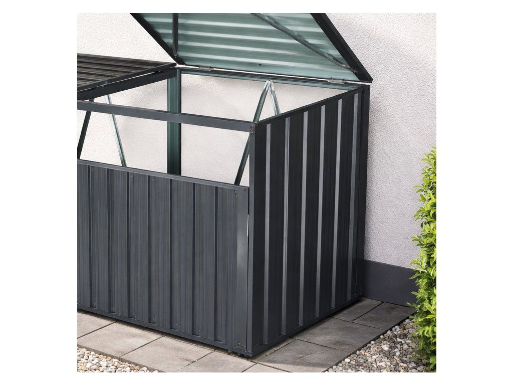 Odolnosť a moderný vzhľadCelé vyhotovenie je v antracitovej farbe, ktorá pôsobí moderne a ľahko zapadne k súčasnej architektúre domu aj záhrady. Oceľové vyhotovenie je bezúdržbové a odolné voči bežným poveternostným vplyvom.