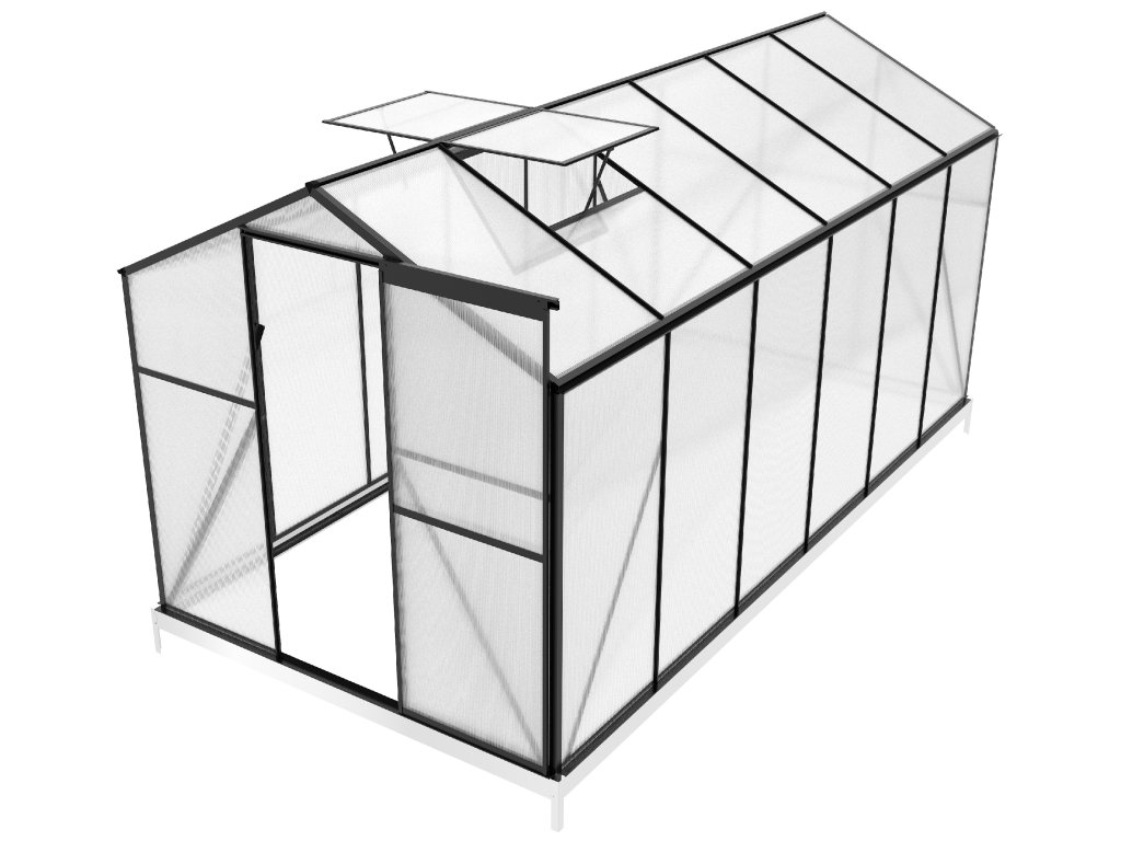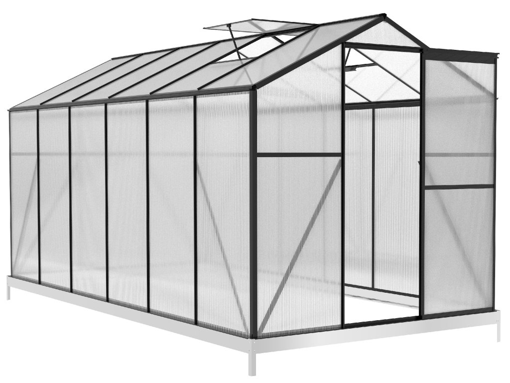 Praktické vetranie a pevný základSkleník je vybavený jednými posuvnými dverami pre pohodlný vstup a dvoma ventilačnými oknami pre reguláciu teploty a vlhkosti. Súčasťou modelu je aj základový rám, ktorý zvyšuje stabilitu celej konštrukcie. TIP: Pre maximálnu stabilitu odporúčame základový rám ukotviť k pevnému podkladu.