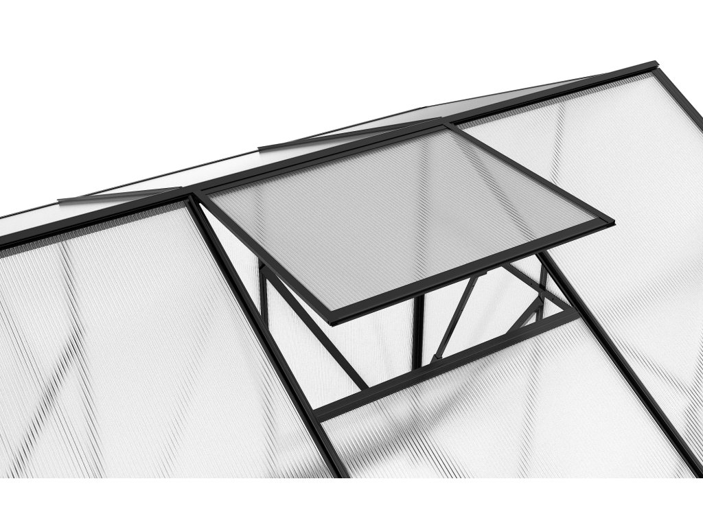 Kvalitné polykarbonátové doskyVýplň tvoria 4 mm polykarbonátové dosky, ktoré dobre prepúšťajú svetlo a zároveň chránia rastliny pred nepriaznivým počasím. TIP: Dutinkový polykarbonát pomáha udržiavať stabilnú teplotu vo vnútri skleníka.