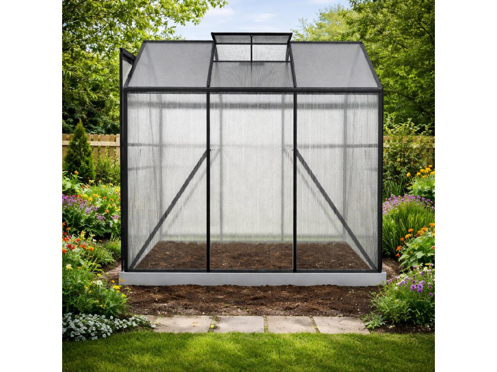 Ideálna veľkosť pre vašu záhraduSkleník s plochou 3,61 m² a rozmermi 190 × 190 cm poskytuje dostatok priestoru na pestovanie zeleniny, byliniek aj sadeníc. Výška steny 145 cm a celková výška 206 cm umožňujú pohodlný pohyb vo vnútri a lepšiu manipuláciu s rastlinami. TIP: Vďaka kompaktným rozmerom je skleník vhodný aj do menších záhrad.