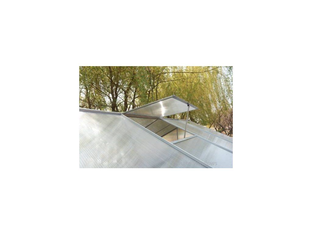 Praktický automatický otvárač okien skleníka BestBerg z kombinácie hliníka a ocele. Zabezpečuje automatické vetranie bez elektriny, čím pomáha udržiavať optimálnu teplotu v skleníku.