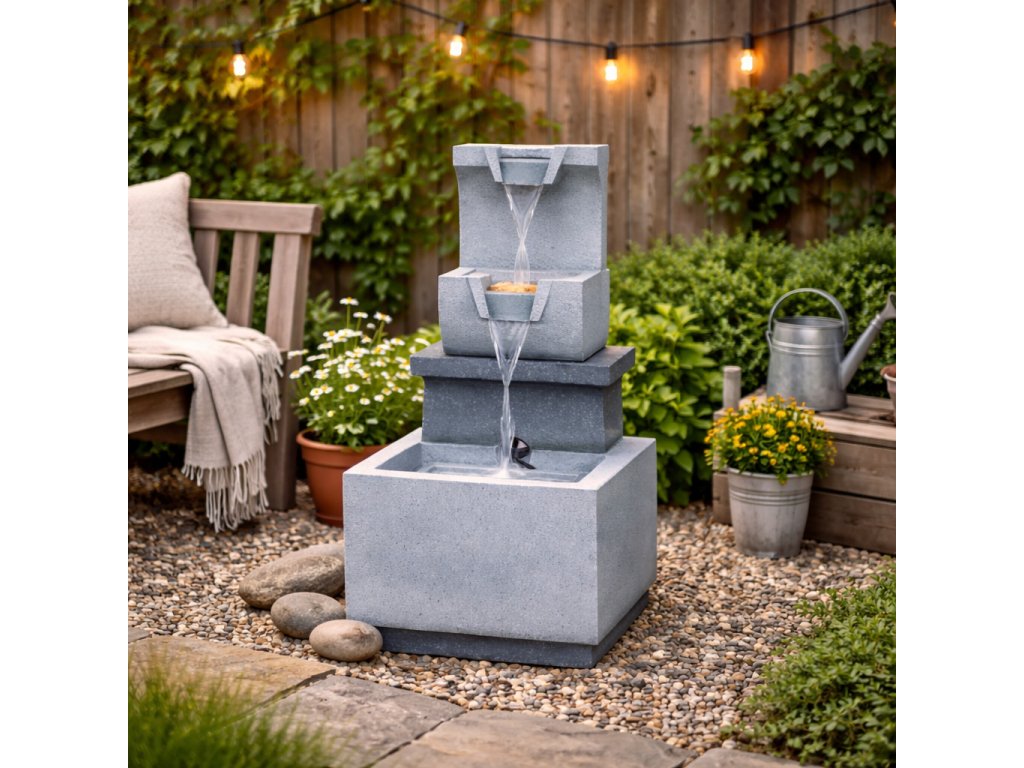 Chcete si vyzdobiť záhradu alebo dom a dobre si pri tom oddýchnuť? Potom by vám nemala chýbať záhradná fontána. Vďaka príjemným zvukom tečúcej vody vytvorí tú správnu relaxačnú náladu a oceníte ju aj vizuálne. Motív v tvare postupne tečúcej fontány krásne doplní vašu záhradu. Vo večerných hodinách vás poteší aj LED podsvietenie.