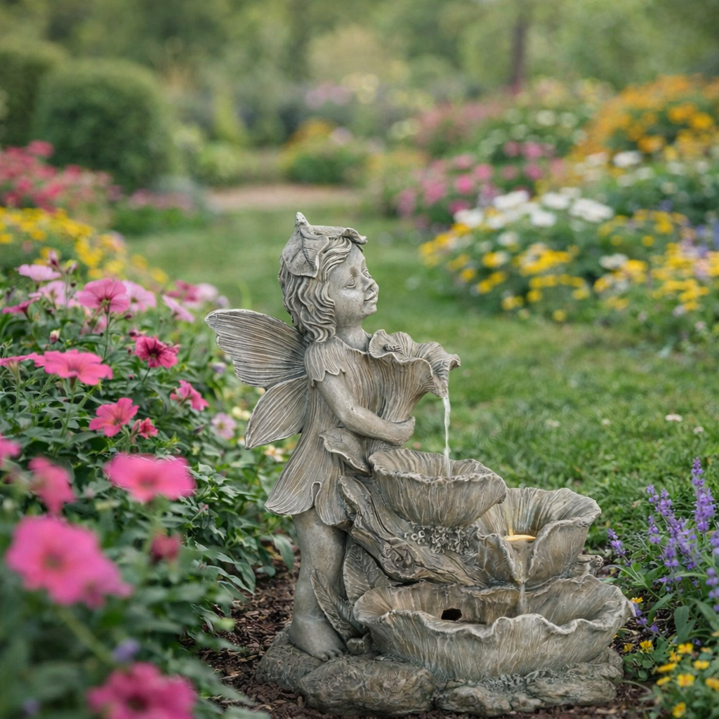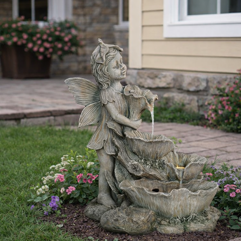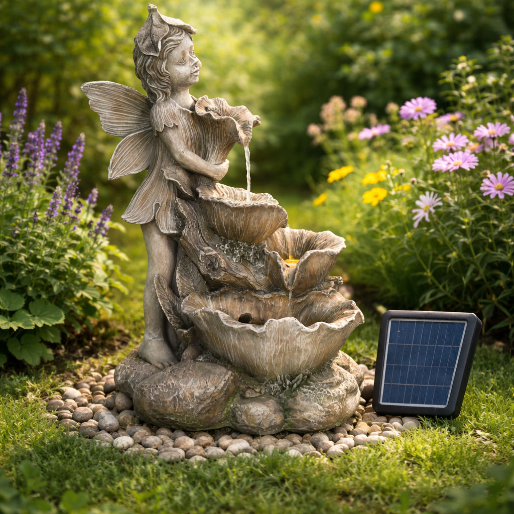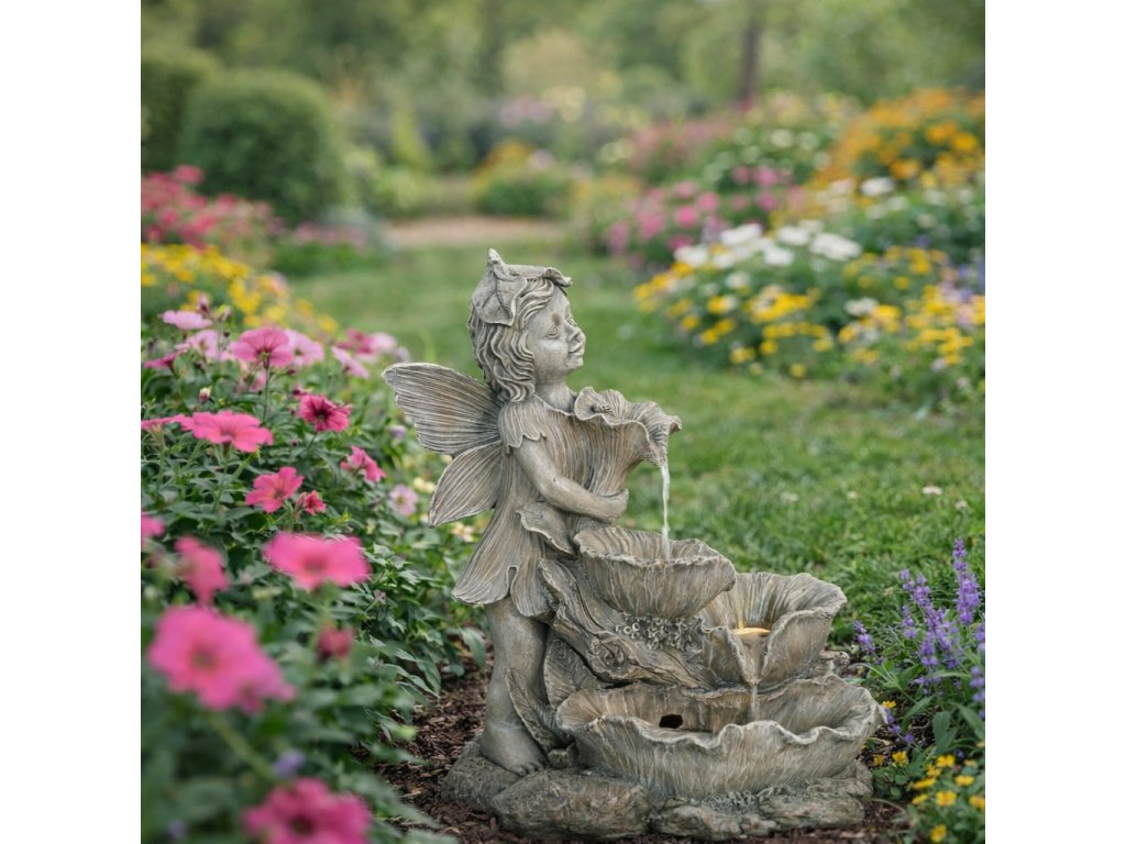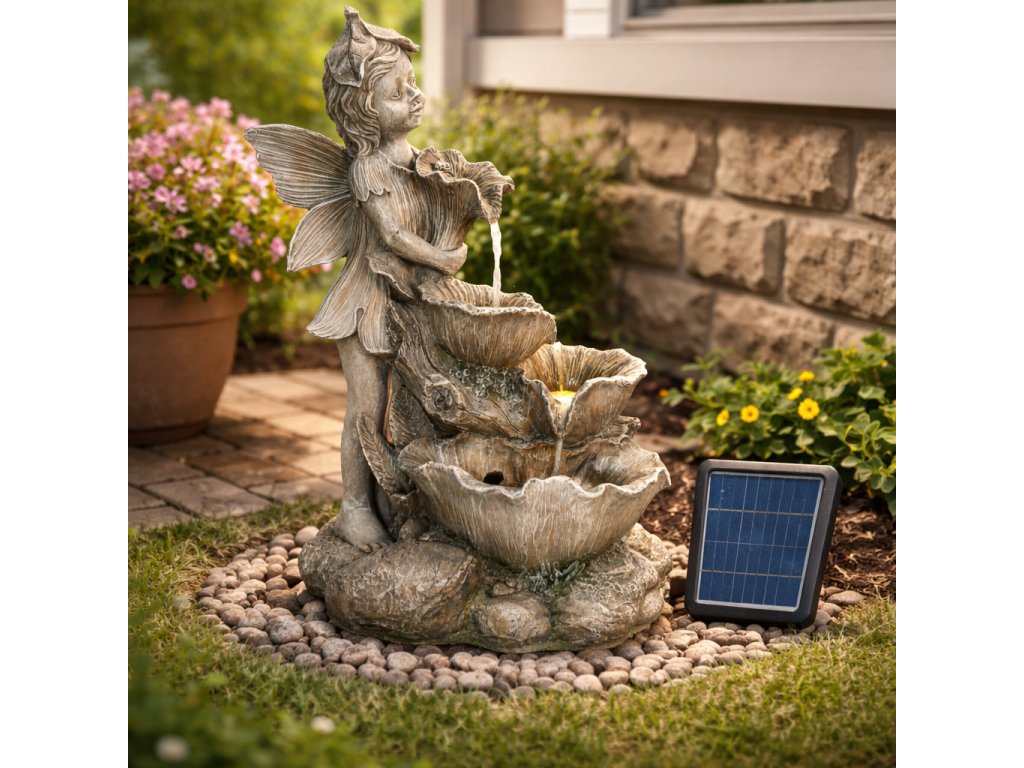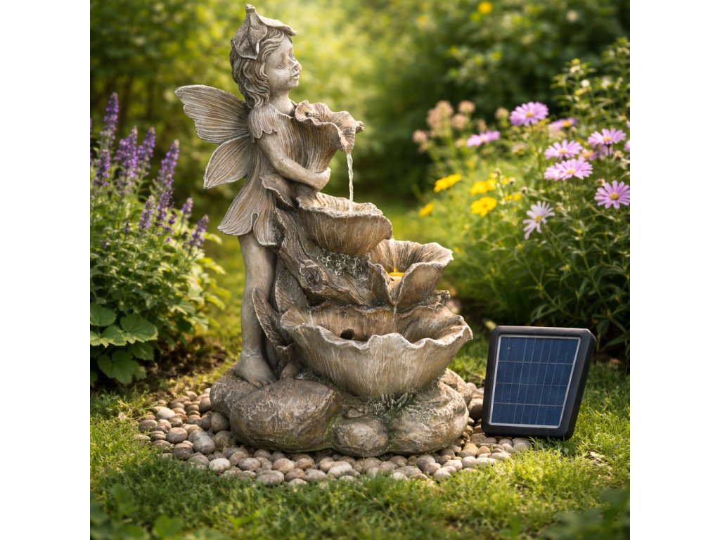 Chcete si ozdobiť záhradu a zároveň si pri sedení dobre oddýchnuť? Potom by vám nemala chýbať solárna záhradná fontána. Vďaka príjemným zvukom tečúcej vody vytvorí tú správnu relaxačnú náladu a oceníte ju aj vizuálne. Prírodné motívy spolu s vílou v elegantnom štýle krásne doplnia vašu záhradu. Vo večerných hodinách vás poteší aj LED podsvietenie.