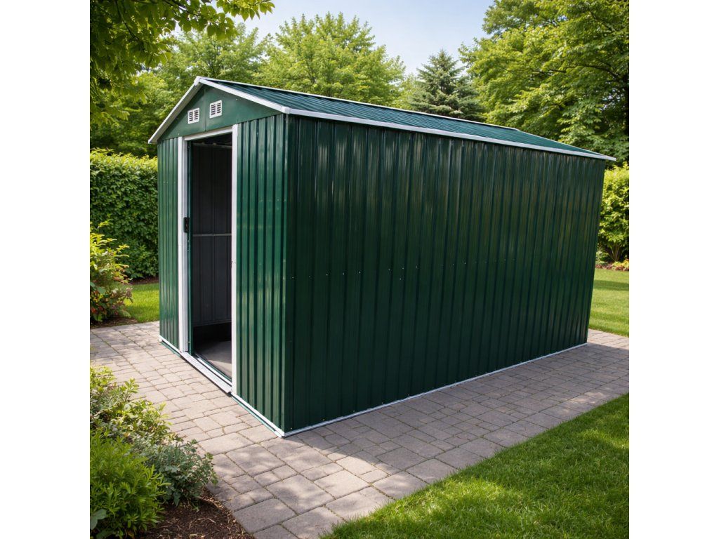 Elegantný dizajn s priestranným úložiskomZáhradný domček BestBerg BBSH-1208GR s plochou 10,1 m² sa stane praktickým úložiskom pre všetky záhradné potreby. Moderná zelená farba ladí s akoukoľvek záhradou či dvorom.