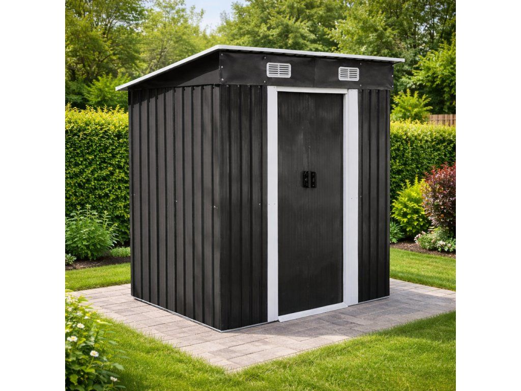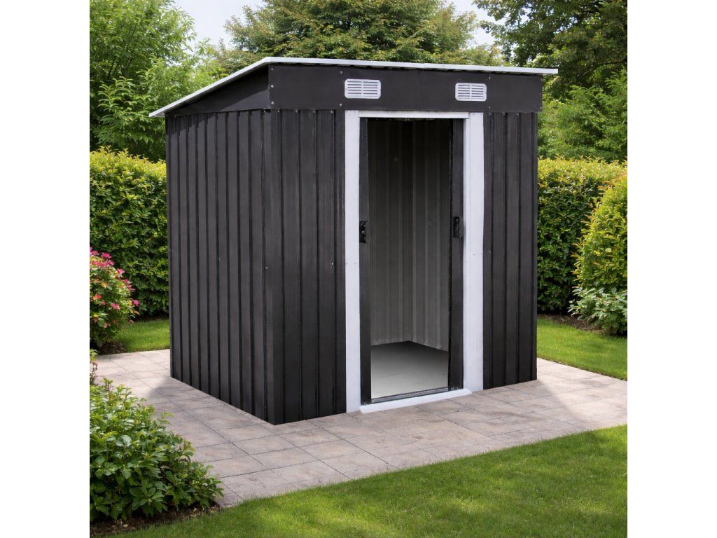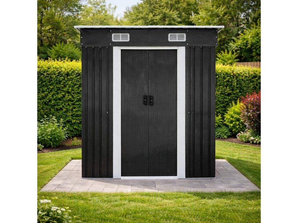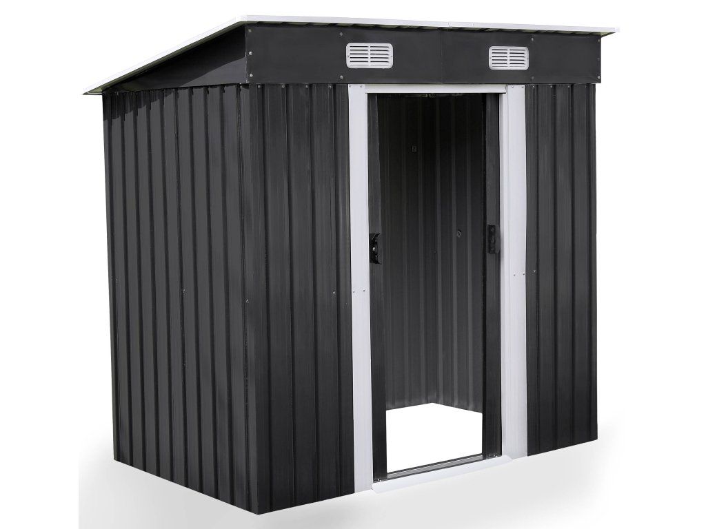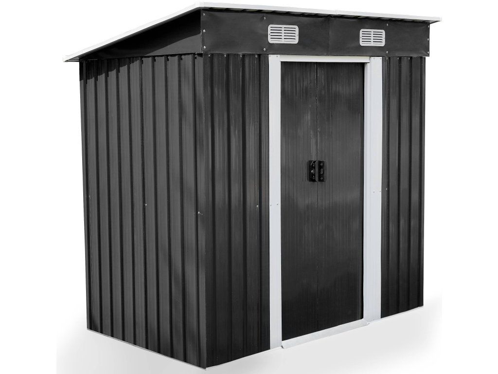 Moderný dizajn s praktickou pultovou strechouKovový záhradný domček v antracitovo-bielom vyhotovení pôsobí elegantne a zároveň technicky čisto. Vďaka pultovej streche je zabezpečený efektívny odvod vody a snehu.