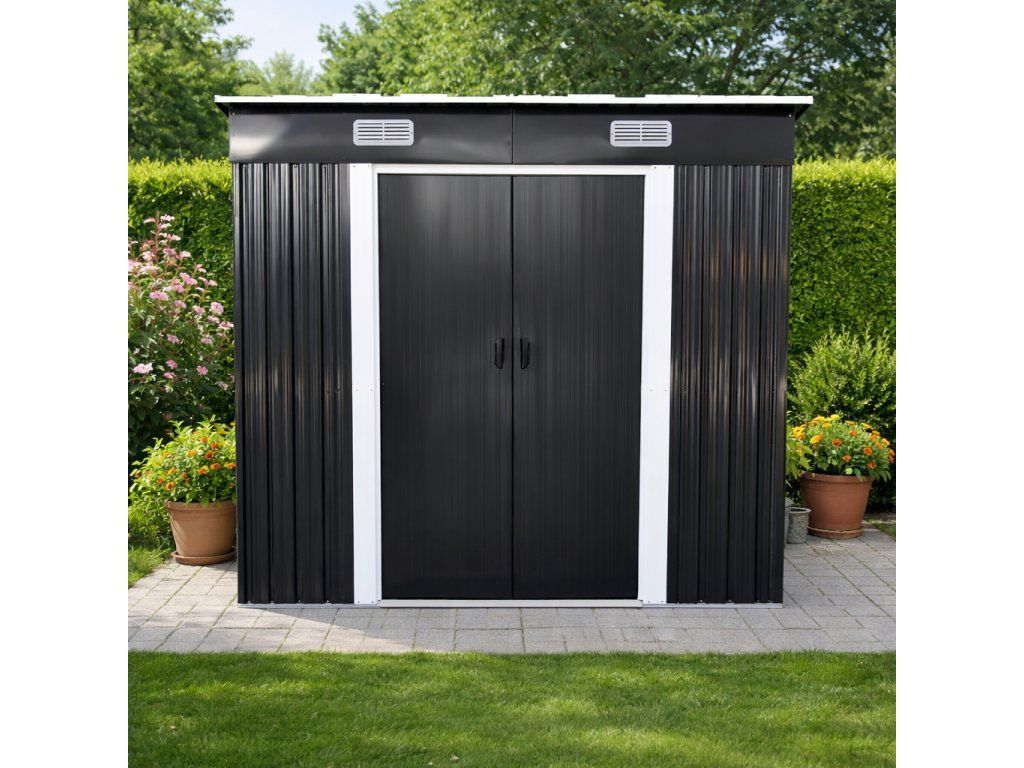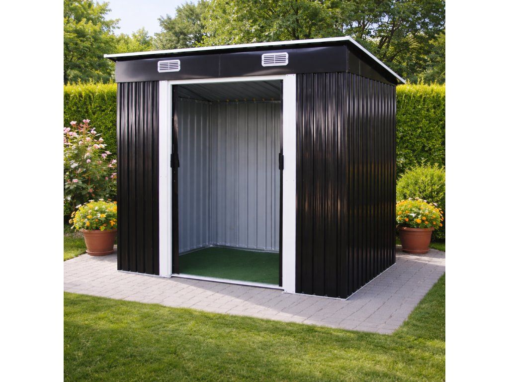 Chýba vám na záhrade miesto, kam bezpečne uložiť náradie, techniku aj sezónne vybavenie? Spoľahnite sa na kovový záhradný domček s pultovou strechou, ktorý ponúka kompaktné rozmery, pevnú oceľovú konštrukciu a praktické posuvné dvere na pohodlný prístup.
