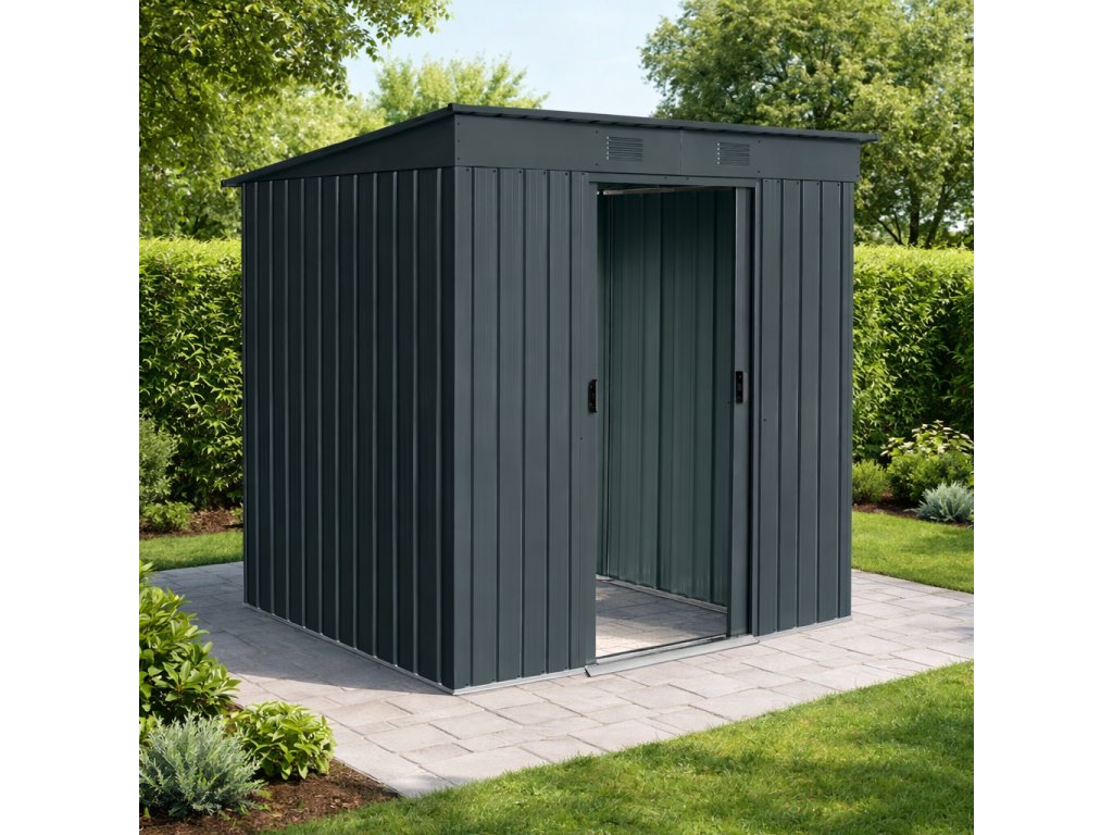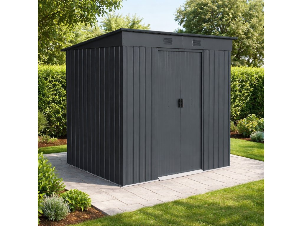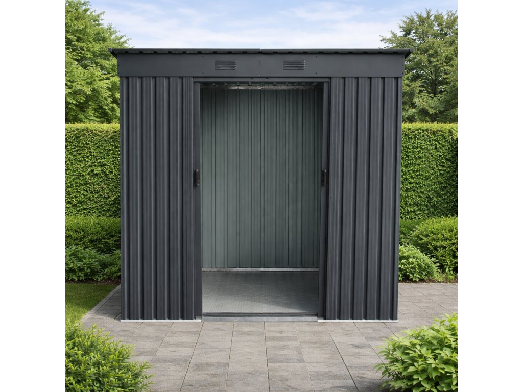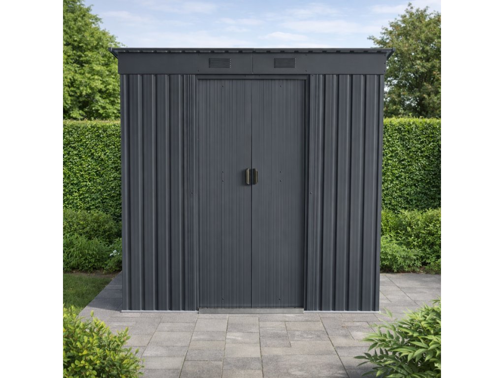 Zdravé prostredie a variabilné využitieModerné kovové vyhotovenie v antracitovej farbe je doplnené vetracími otvormi, ktoré podporujú prirodzenú cirkuláciu vzduchu a pomáhajú obmedzovať vznik vlhkosti vo vnútri domčeka. Vďaka tomu zostáva uložené vybavenie lepšie chránené pred kondenzáciou a zatuchnutým prostredím. Domček môžete využiť ako:
