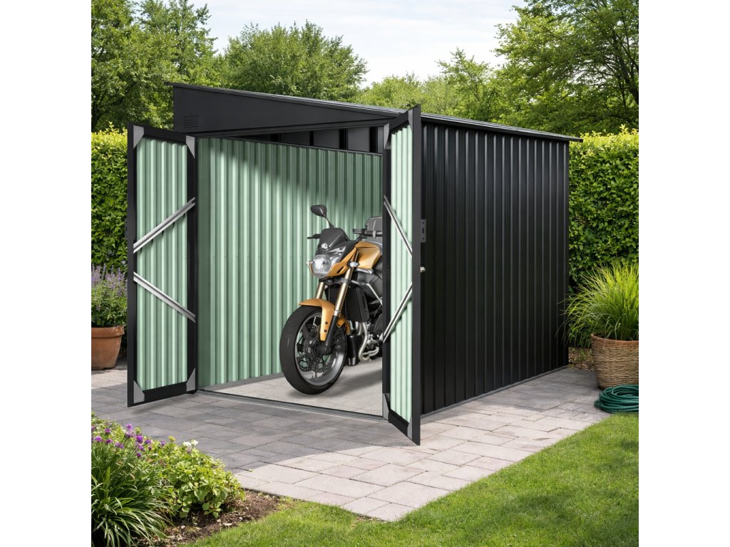 Hľadáte priestranný a odolný záhradný domček, ktorý ochráni vašu techniku aj náradie pred nepriaznivým počasím? Kovový záhradný domček BestBerg ZS-608A s pultovou strechou ponúka moderný dizajn, pevnú konštrukciu a dlhú životnosť.